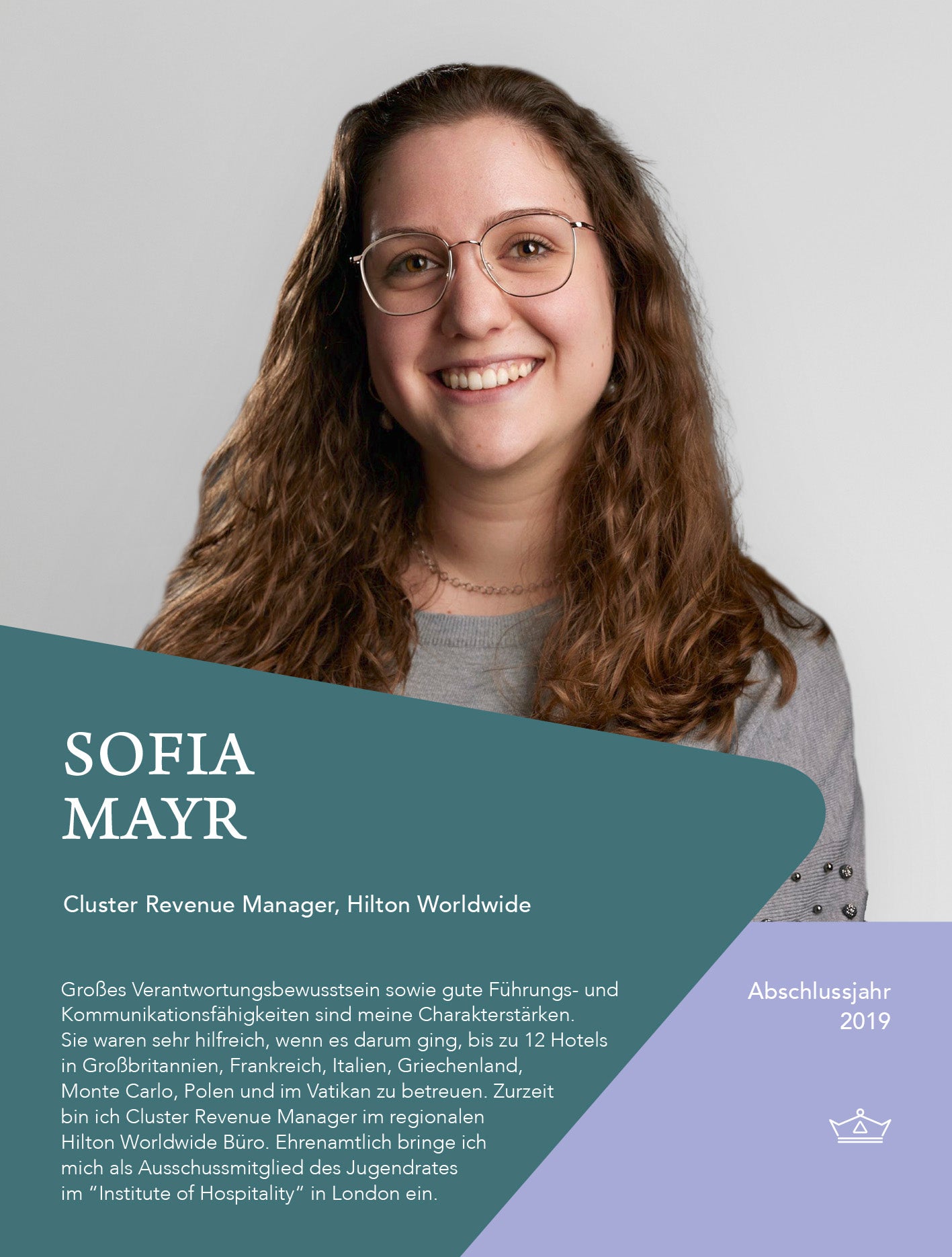 Auf den Kaiserhofabschluss im Jahr 2003 folgte ein Bachelorabschluss in „Internationalem Hotel and Tourismus Management an der Universität Cesar Ritz in Brig in der Schweiz. Nach einer Trainee -Tätigkeit bei der amerikanischen Hotelkette Hyatt führte sie der Weg nach Deutschland, Dubai, Hongkong und Shanghai.