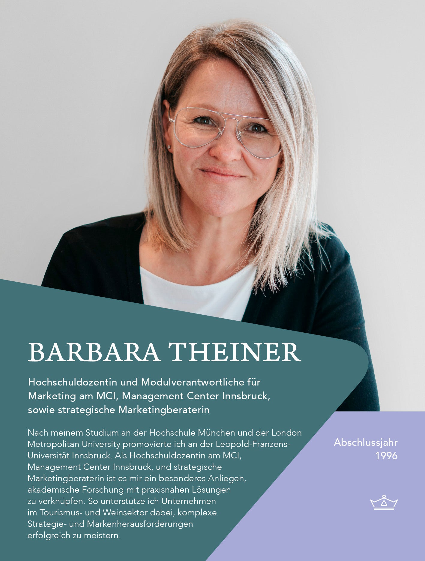 Nach dem Abschluss am Kaiserhof und dem Studium an der Hochschule München (Tourismus-Management) sowie der London Metropolitan University (International Leisure and Tourism Management) promovierte Barbara Theiner an der Leopold-Franzens-Universität Innsbruck. Als Hochschuldozentin am Management Center Innsbruck und strategische Marketingberaterin ist es ihr ein besonderes Anliegen, akademische Forschung mit praxisnahen Lösungen zu verknüpfen.