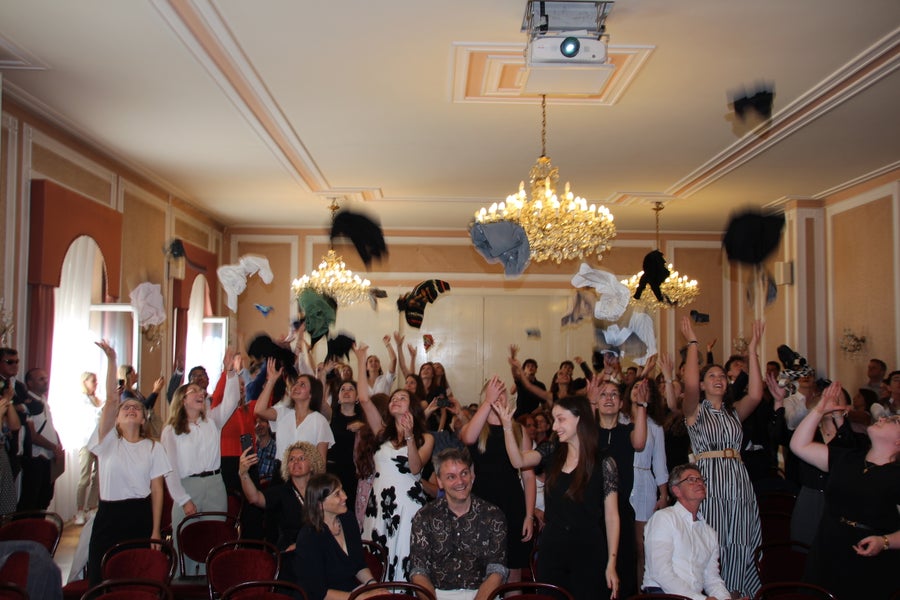 Wie bekannt, ist die strenge Schulkleidung eine Besonderheit des Kaiserhofs. Um sich symbolisch von der Schulzeit zu verabschieden, sprachen Direktor und Vizedirektor die MaturantInnen von der Krawattenpflicht am Ende der Diplomverleihungsfeier los. Darauf folgte der nun übliche Krawattenwurf, ein Ritual, das die KaiserhöflerInnen nicht mehr missen möchten.