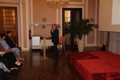 Ehrengast Manfred Pinzger übernahm darauf das Wort und lobte die Schule als besondere Ausbildungsstätte Südtirols. Weiters hob Pinzger hervor, wie wichtig Berufserfahrungen im Ausland seien, um dann wieder in die Heimat zurückzukommen. Pinzger bedauerte in seiner flammenden Rede, dass man den Tourismus ständig für alles „schuldig“ machen wolle, wenn was nicht passe, besonders ging er dabei auf das Thema Mobilität ein und erinnerte daran, wie international die Passerstadt vernetzt war, als es eine direkte Zugverbindung Meran-Hamburg gab.