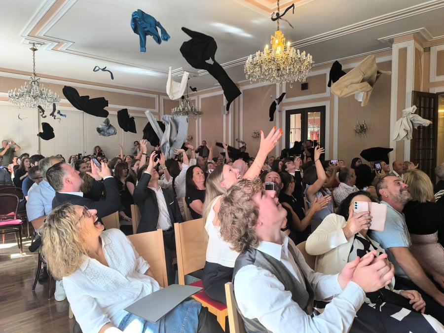 Bekanntlich zeichnen sich Schülerinnen und Schüler des Kaiserhof auch durch die Schulkleidung aus. Um sich symbolisch von der Schulzeit zu verabschieden, entband der Direktor die Maturant*innen am Ende der Diplomverleihungsfeier von der Krawattenpflicht. Darauf folgte der traditionelle Krawattenwurf, ein Ritual, das die Kaiserhöfler*innen nicht mehr missen möchten.