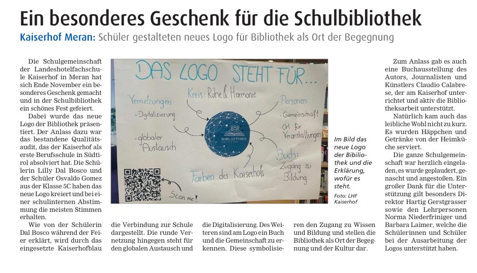 Ein besonderes Geschenk für die Schulbibliothek 11.12.2024 | Pressespiegel HGV-Zeitung Dezember 2024 Dokumente zum Herunterladen Zeitungsartikel zum Thema ein besonderes Geschenk für die Schulbibliothek (HGV-Zeitung - Dezember 2024) (385 KB) »
