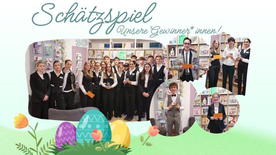 In den Tagen vor Ostern haben wir in der Schulbibliothek ein Schätzspiel für unsere Schüler*innen vorbereitet. Wir haben ein Glas mit Schoko-Ostereiern hergerichtet und es musste geschätzt werden, wie viele Schokoladen im Glas enthalten waren.
