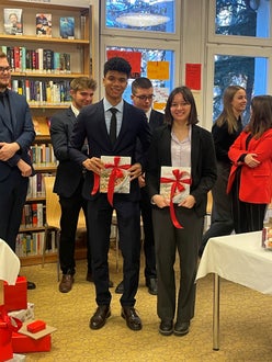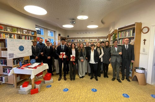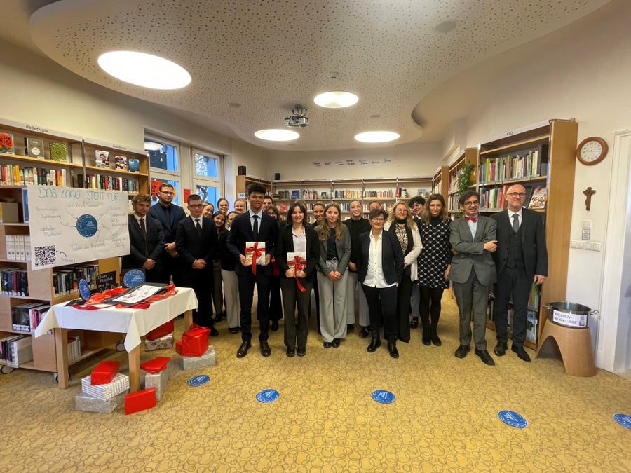 Außerdem gab es eine Buchausstellung des Autors, Journalisten und Künstlers Claudio Calabrese, der an unserer Schule unterrichtet und aktiv die Bibliotheksarbeit unterstützt. Natürlich war auch für Häppchen und Getränke bestens von unserer Heimküche gesorgt worden.