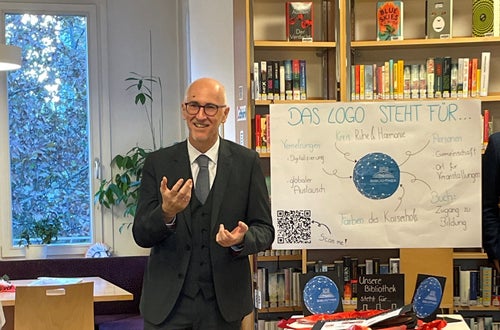 Die Schulgemeinschaft der LHF Kaiserhof hat sich ein besonderes Geschenk gemacht! Wir haben ein Fest in der Schulbibliothek gefeiert und unser neues Logo wurde feierlich präsentiert. Der Anlass dazu war unser bestandenes Qualitätsaudit, das wir als erste Berufsschule in Südtirol absolviert haben. Die Schülerin Lilly Dal Bosco und der Schüler Osvaldo Gomez aus der Klasse 5C haben unser neues Logo kreiert und bei einer schulinternen Abstimmung die meisten Stimmen erhalten. Durch das eingesetzte Kaiserhofblau wird die Verbindung zu unserer Schule dargestellt. Die runde Vernetzung steht für den globalen Austausch und die Digitalisierung. Des Weiteren sind ein Buch und die Gemeinschaft dargestellt, sie symbolisieren den Zugang zu Wissen und Bildung und stellen die Bibliothek als Ort der Begegnung und der Kultur dar.